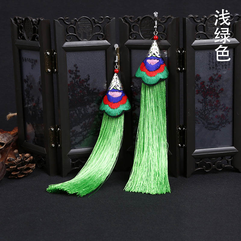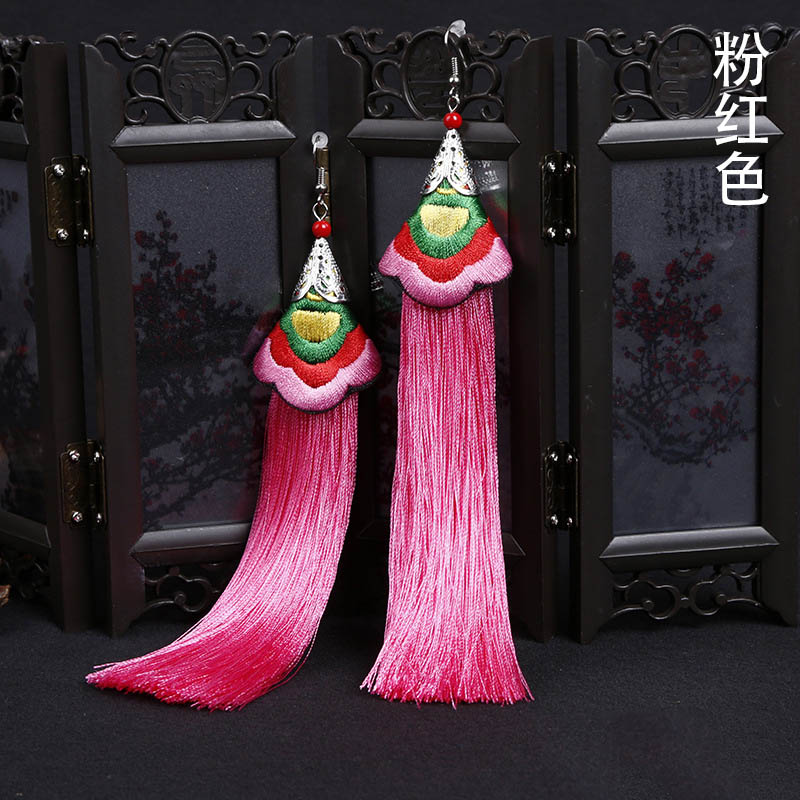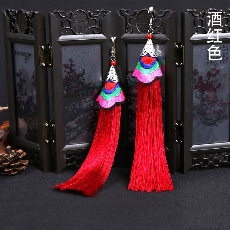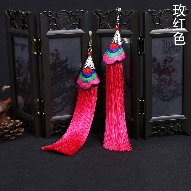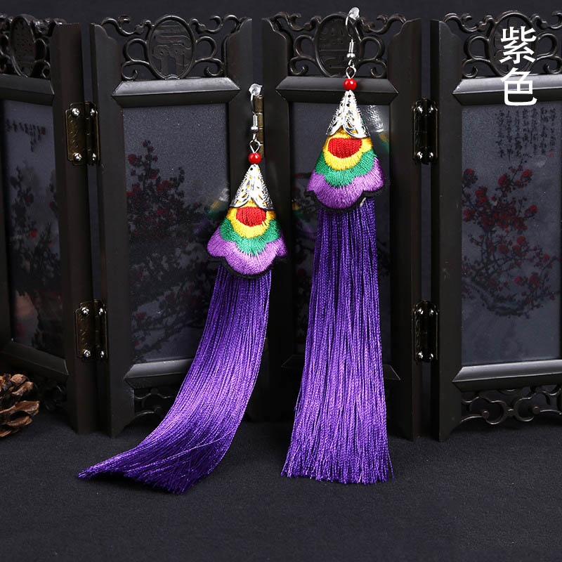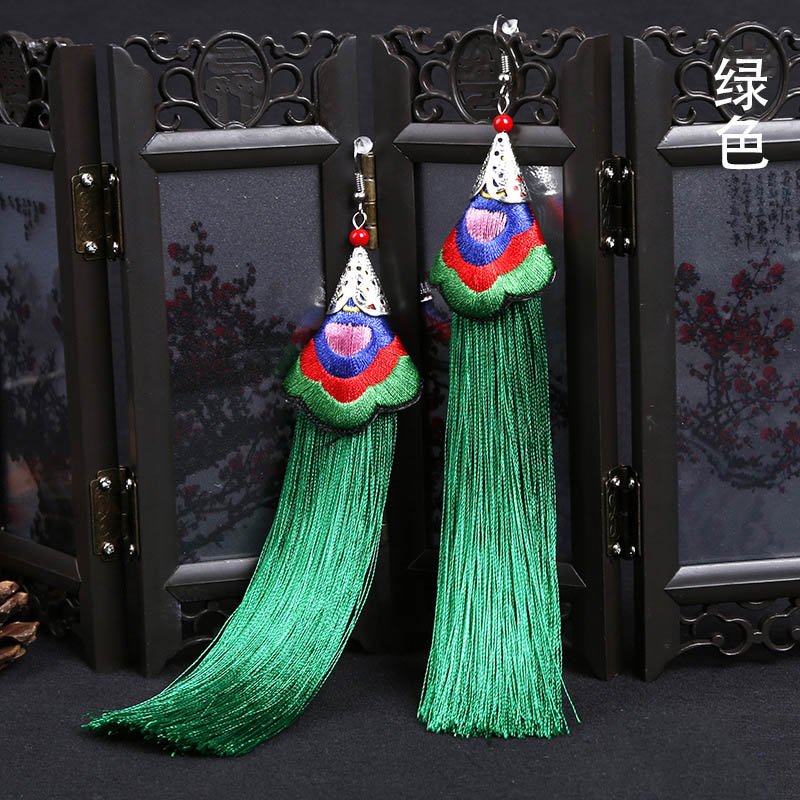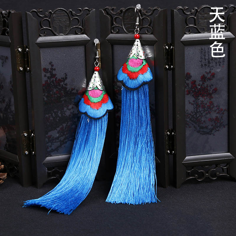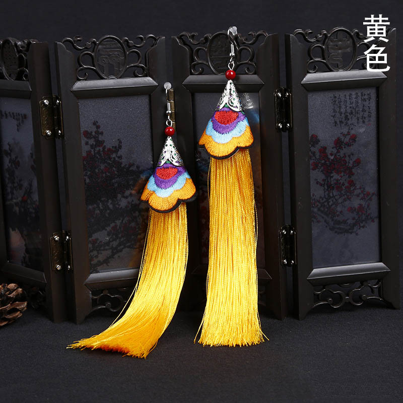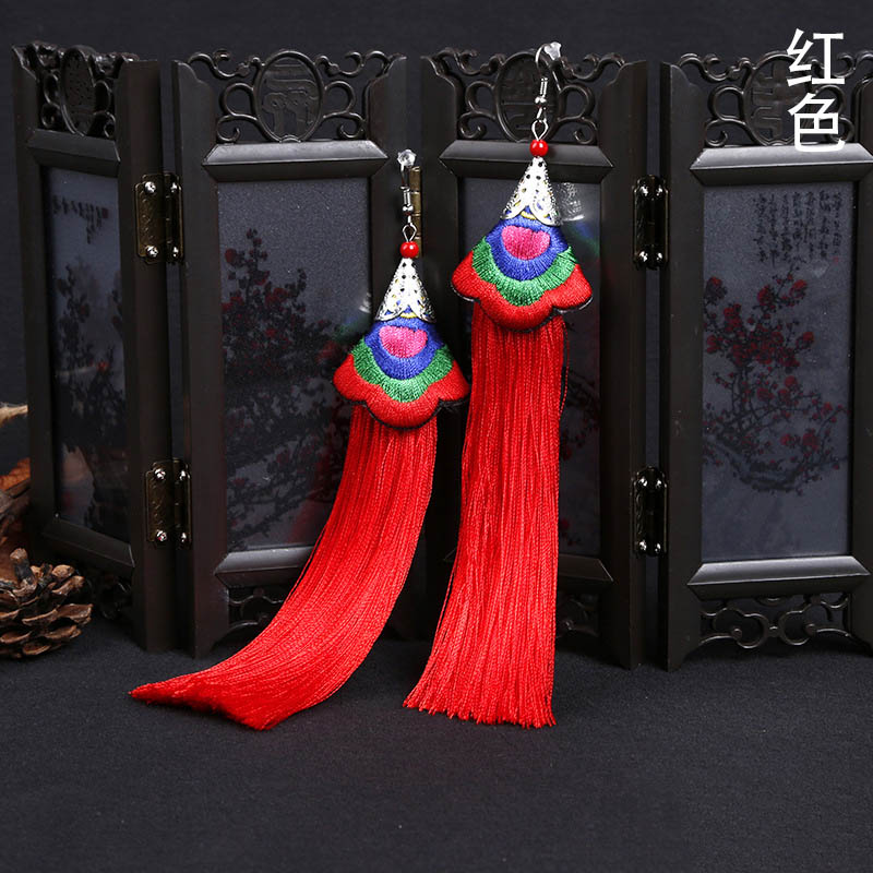 E118 Ethnic Embroidered Long Tassel Earrings