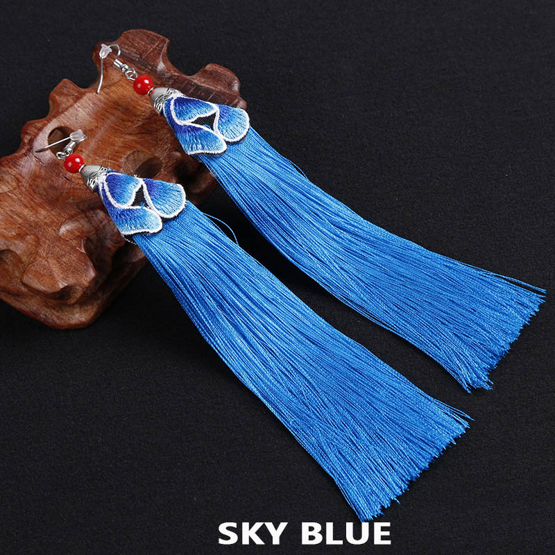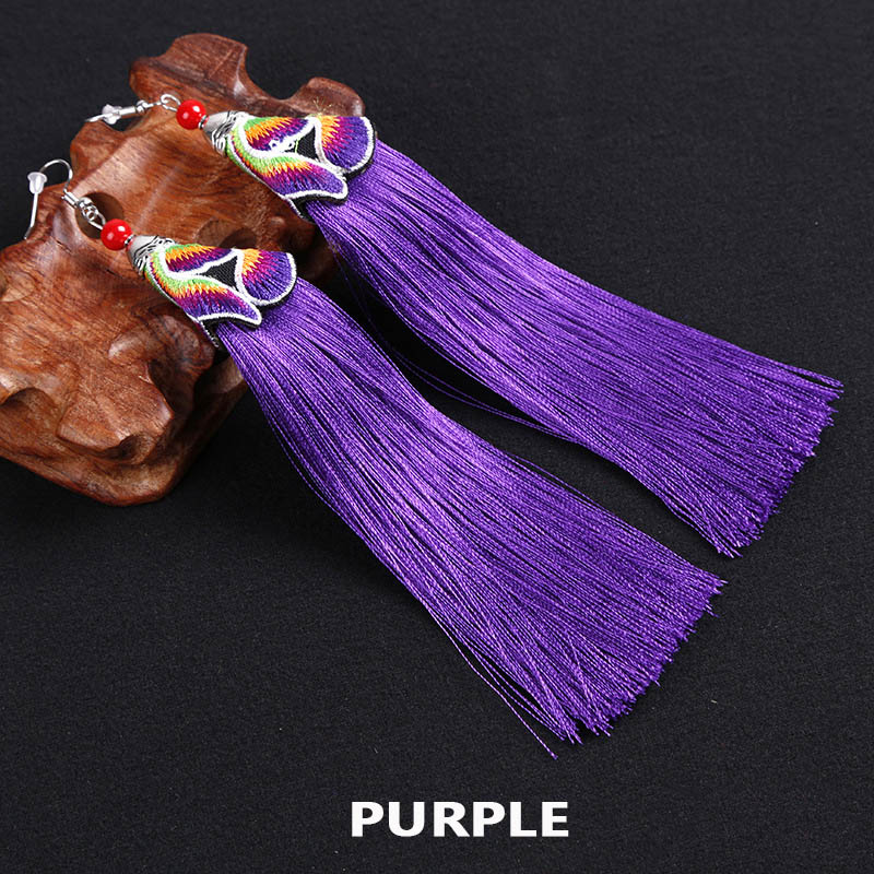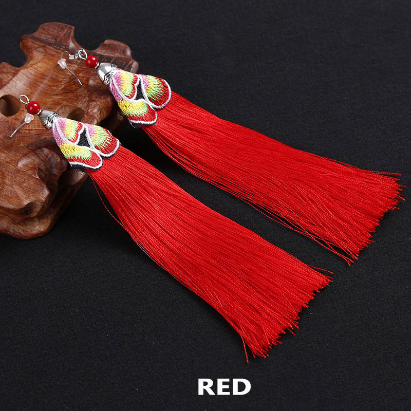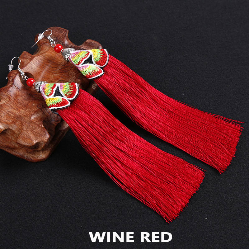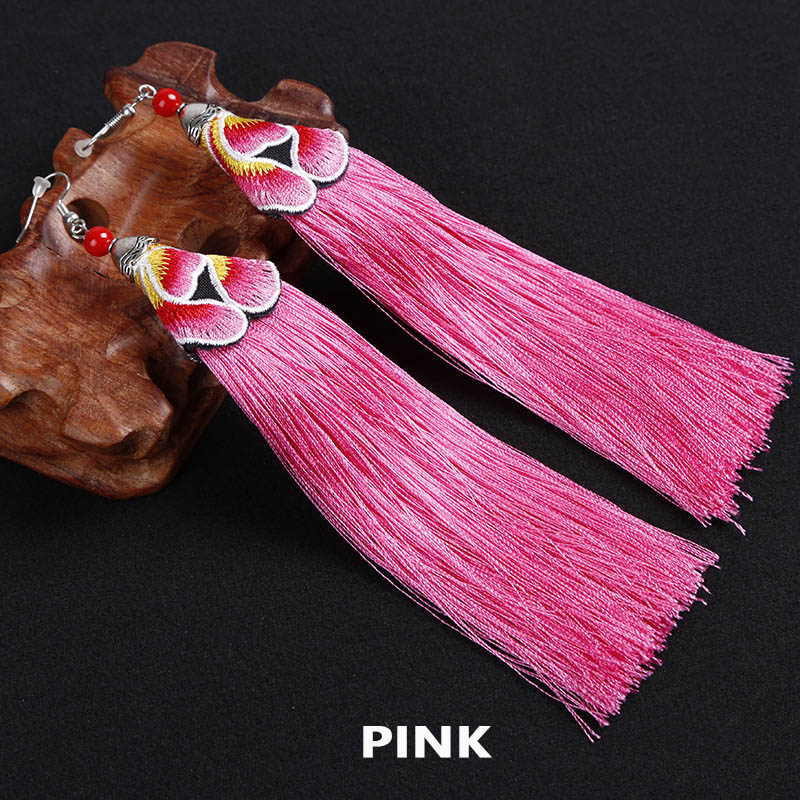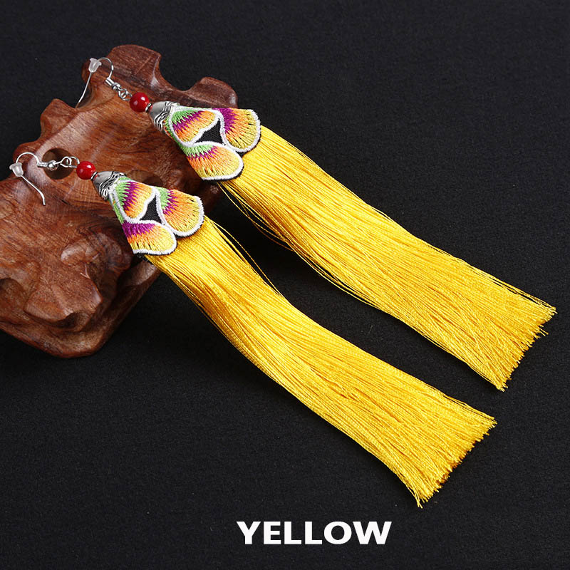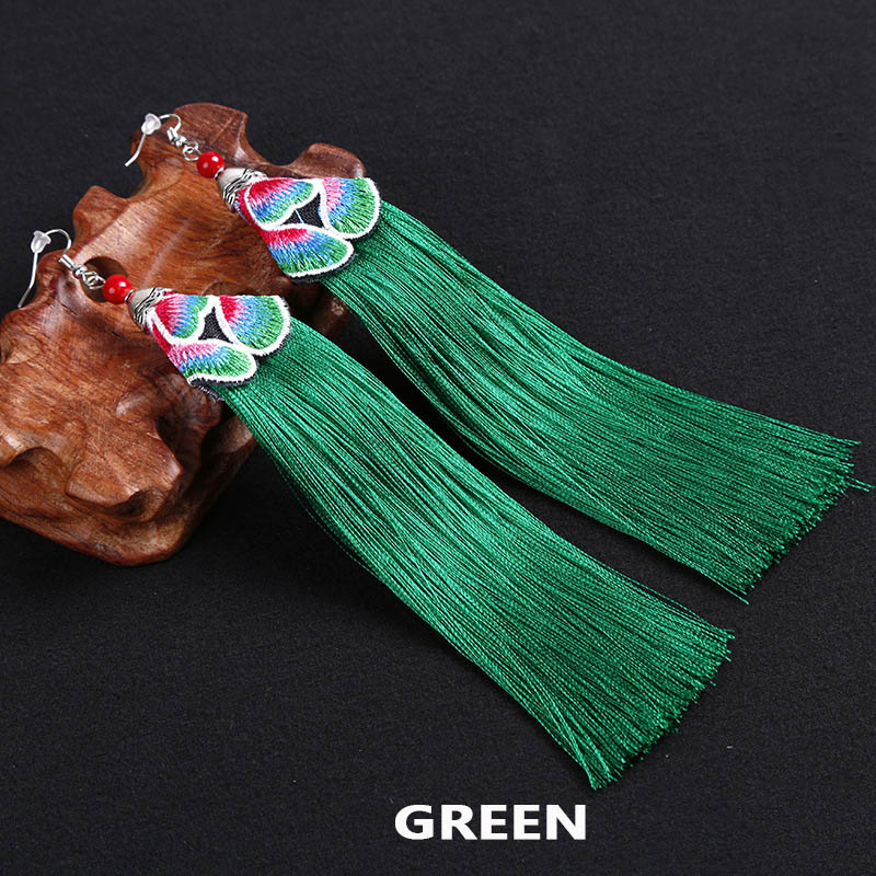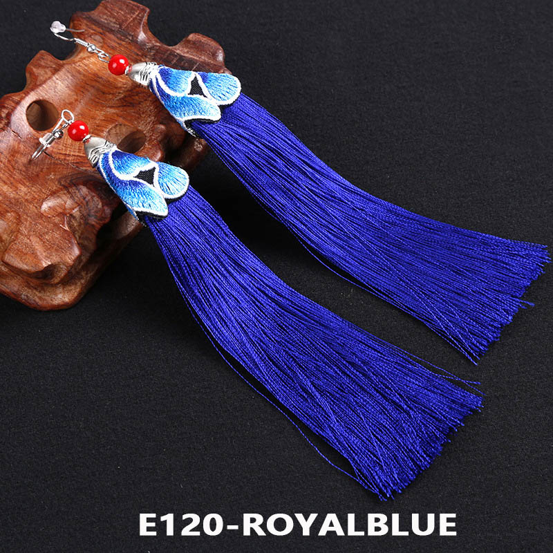 E120 Ethnic Embroidered Tassel Earrings
