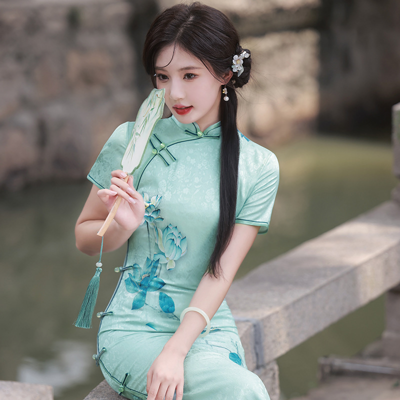 6378 Double-layer Silk Cheongsam Dress