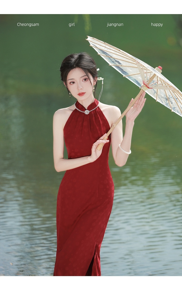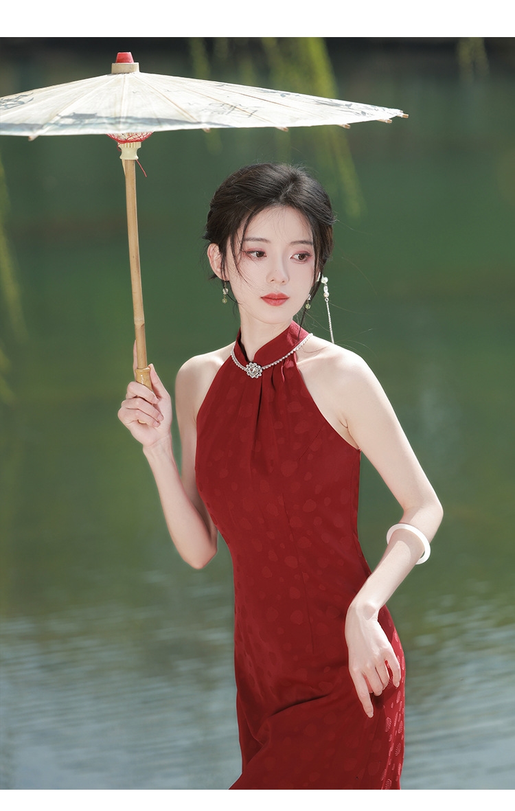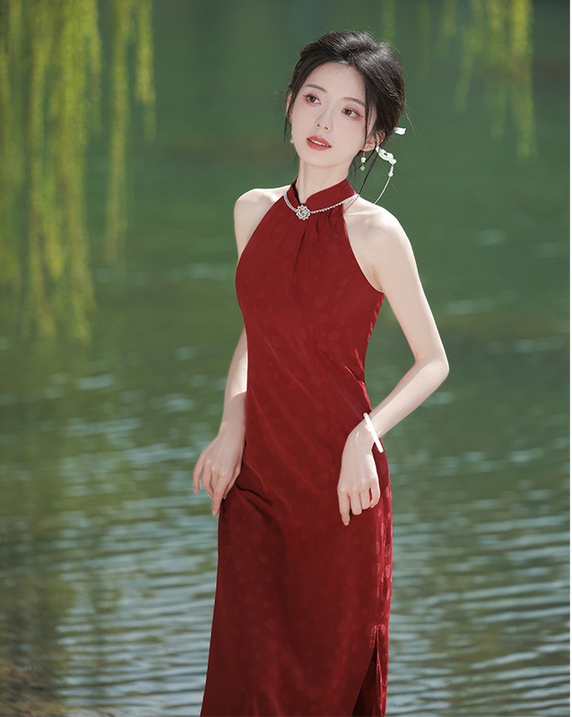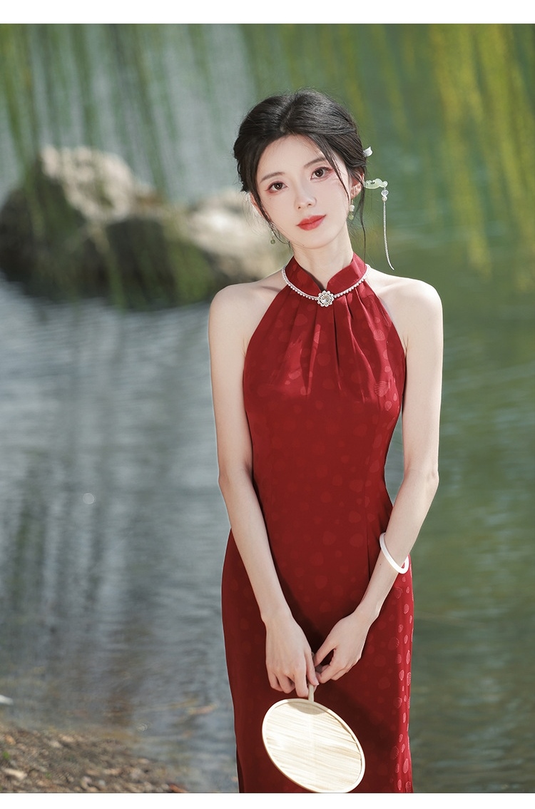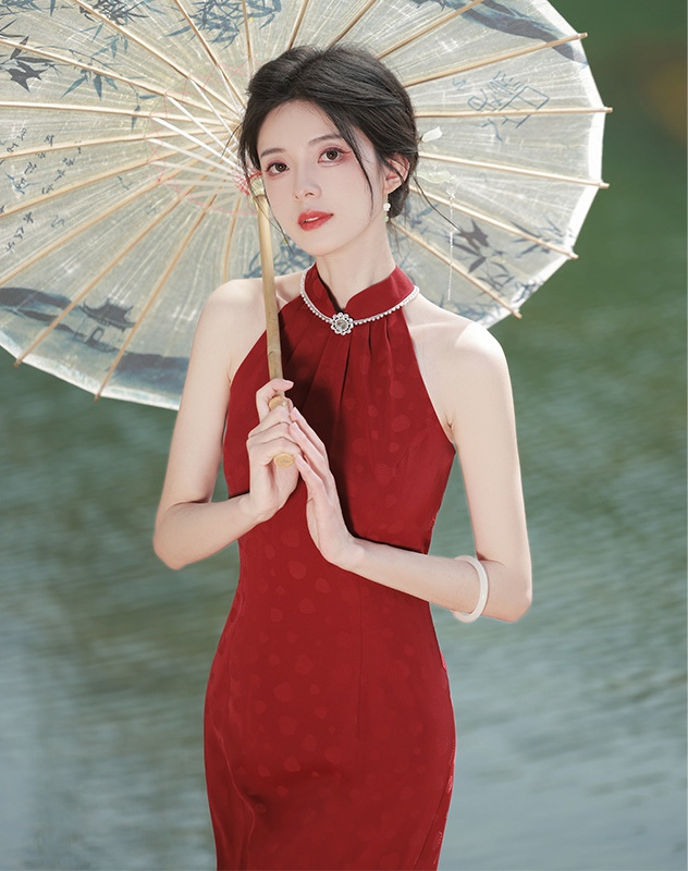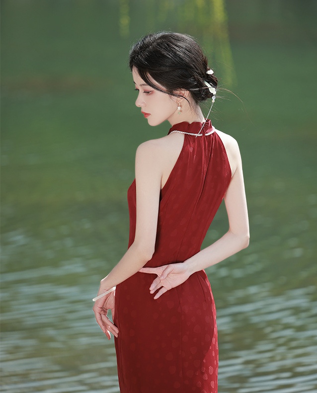 2052 Sleeveless Red Cheongsam Wedding Dress