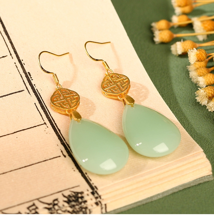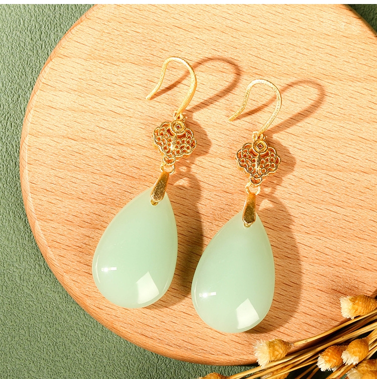 CP30 Hollow Water Drop Hetian Jade Earrings
