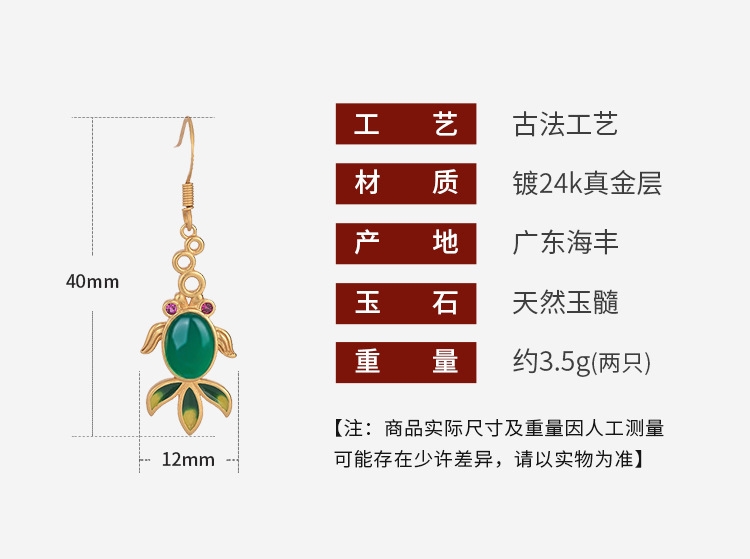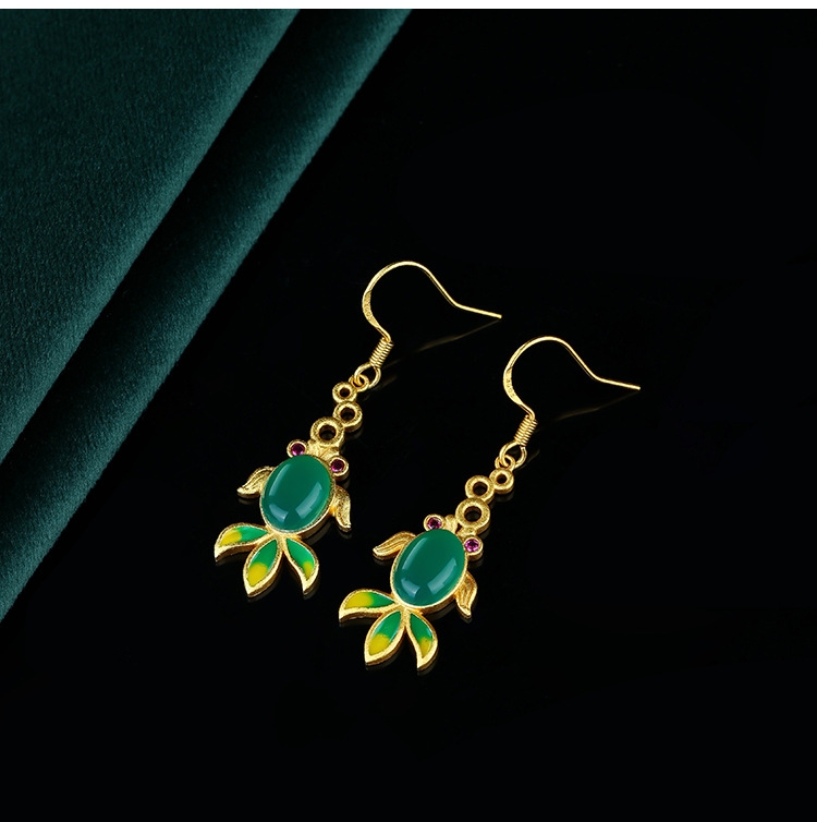 CP392 Natural Jade Koi Fish Earrings