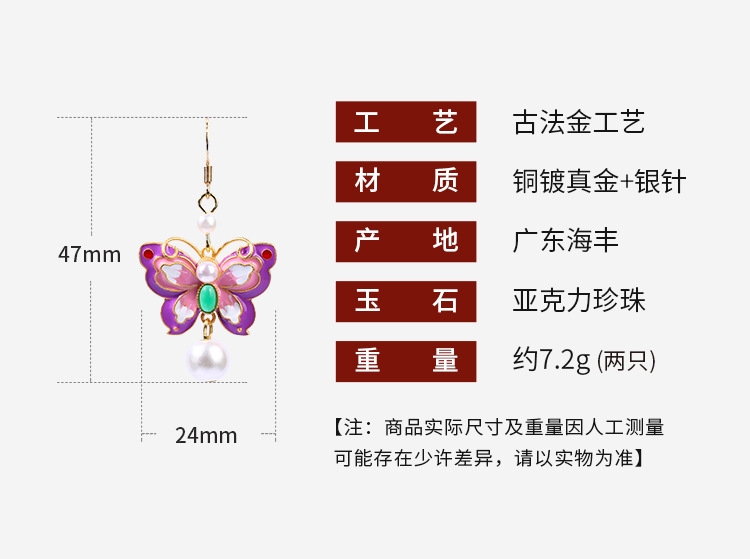 CP956 Cloisonne butterfly earrings