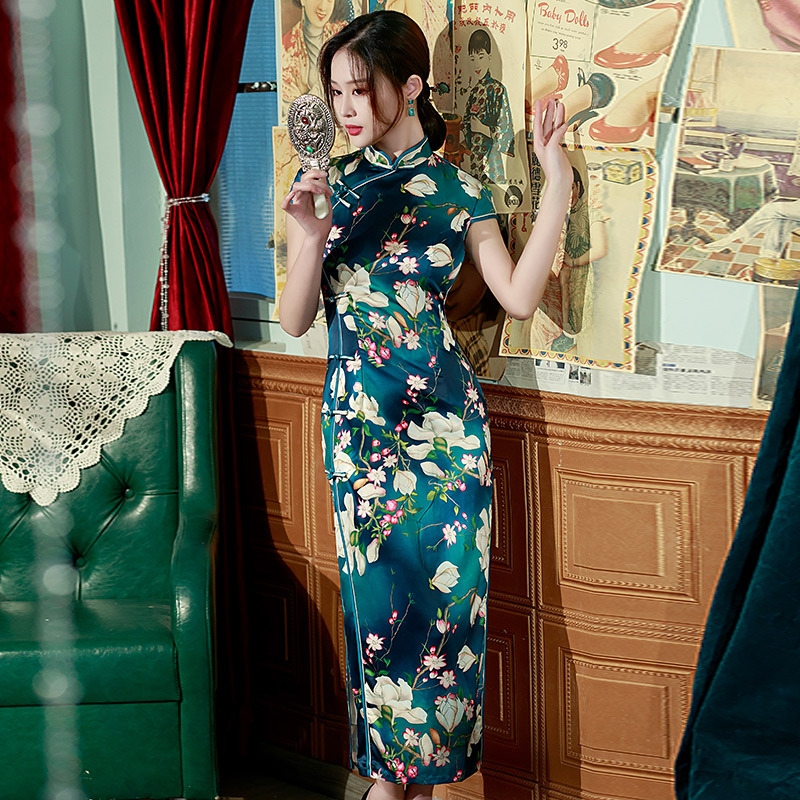 9367 Classic Silk Cheongsam Dress