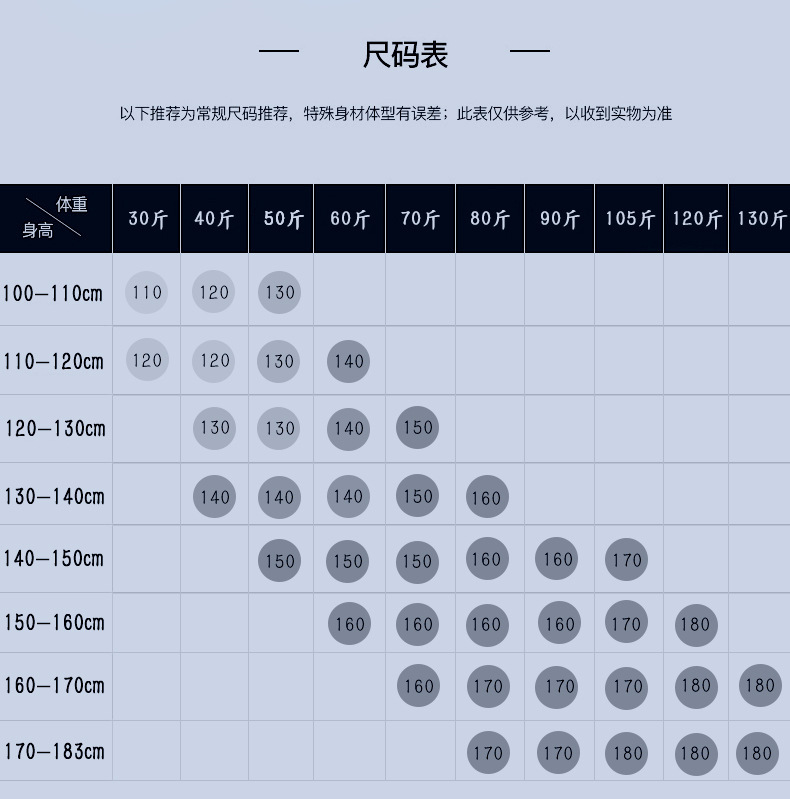 Size:110cm/120cm/130cm/140cm/150cm/160cm/170cm/180cm