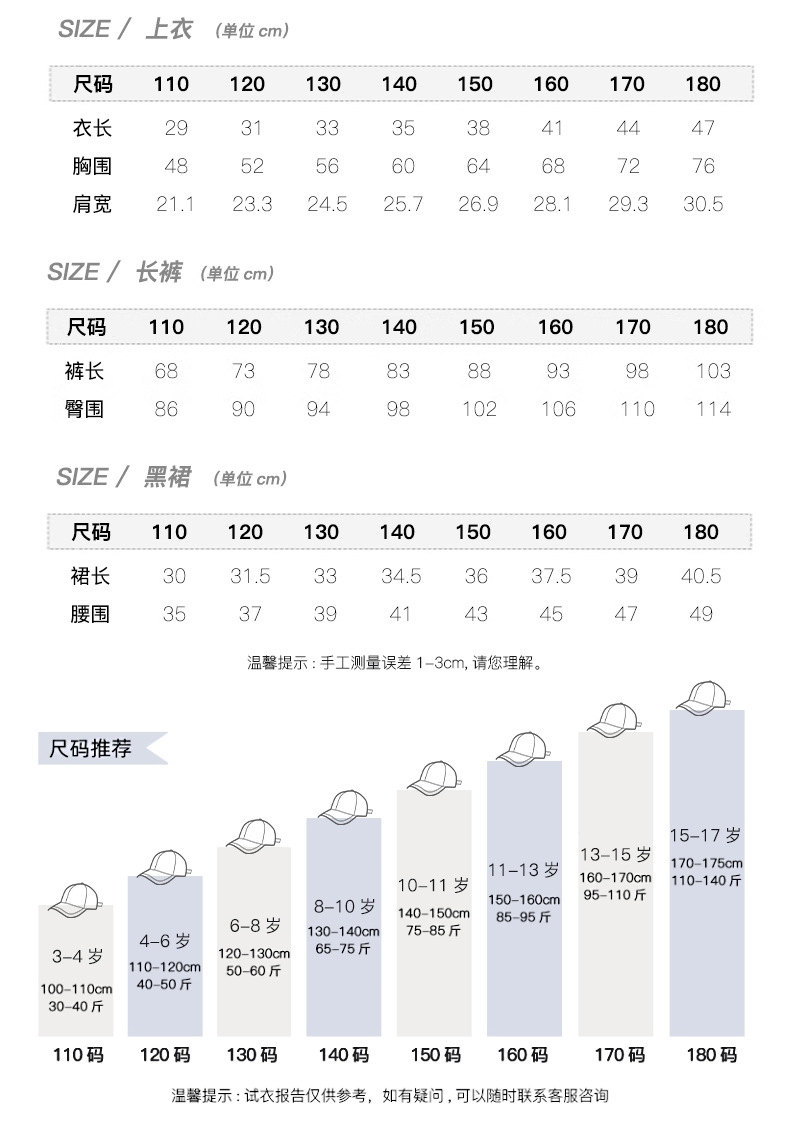 Size:110cm/120cm/130cm/140cm/150cm/160cm/170cm/180cm