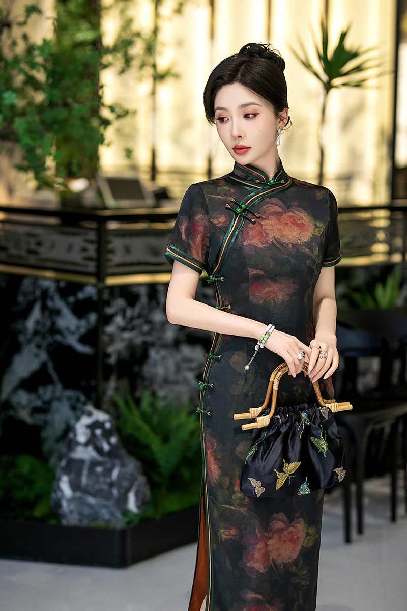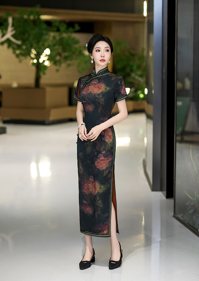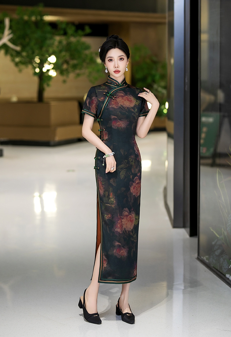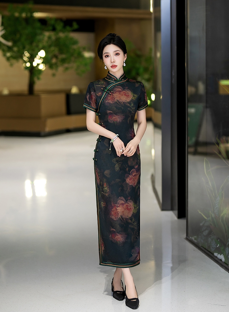 C5593Chinese Traditional Qipao Silk Classical Cheongsam