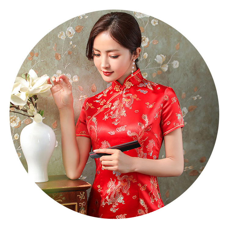 CQ816-1 Red Satin Cheongsam Dress