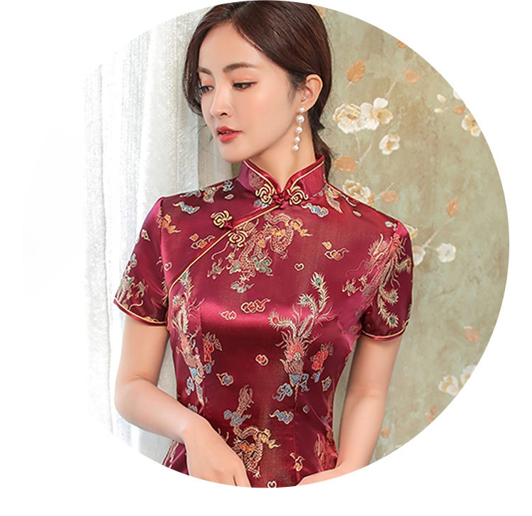 CQ816-3 Wine Red Satin Cheongsam Dress