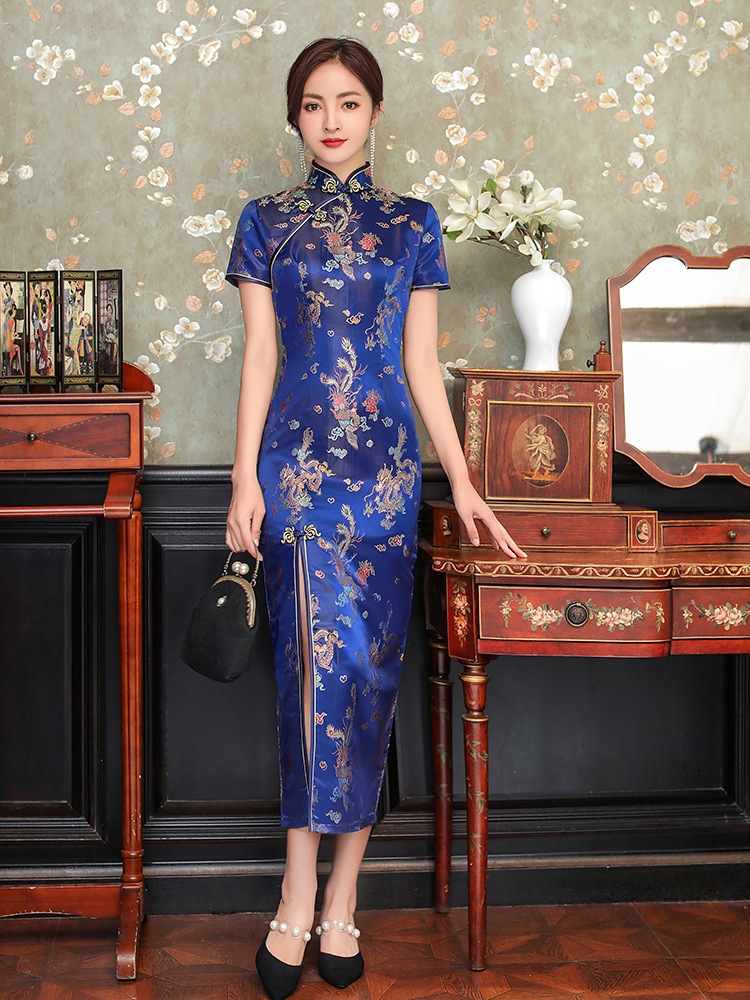 CQ816-4 Satin Cheongsam Dress