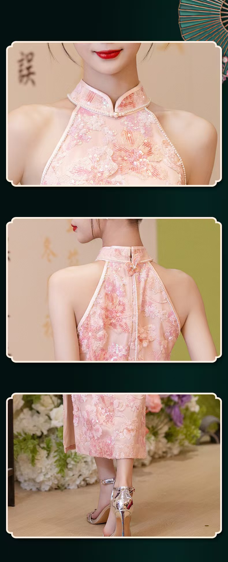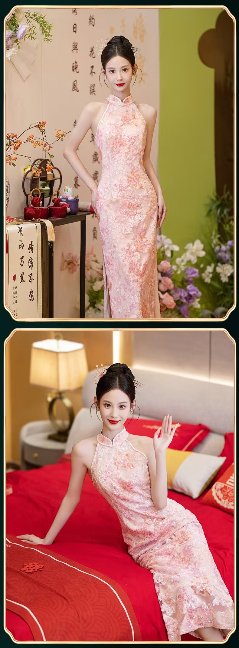 Q78 Pink bridal wedding qipao dress