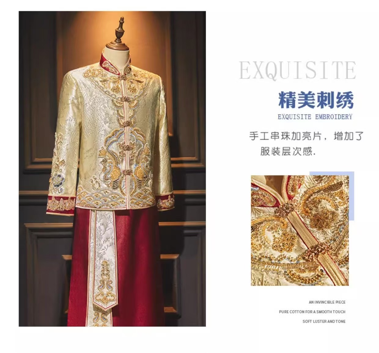 HQ-029 Xiuhe Men's Clothing Groom's Costume Tang Suit