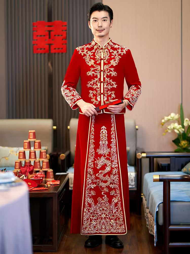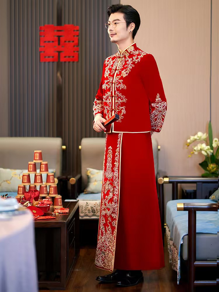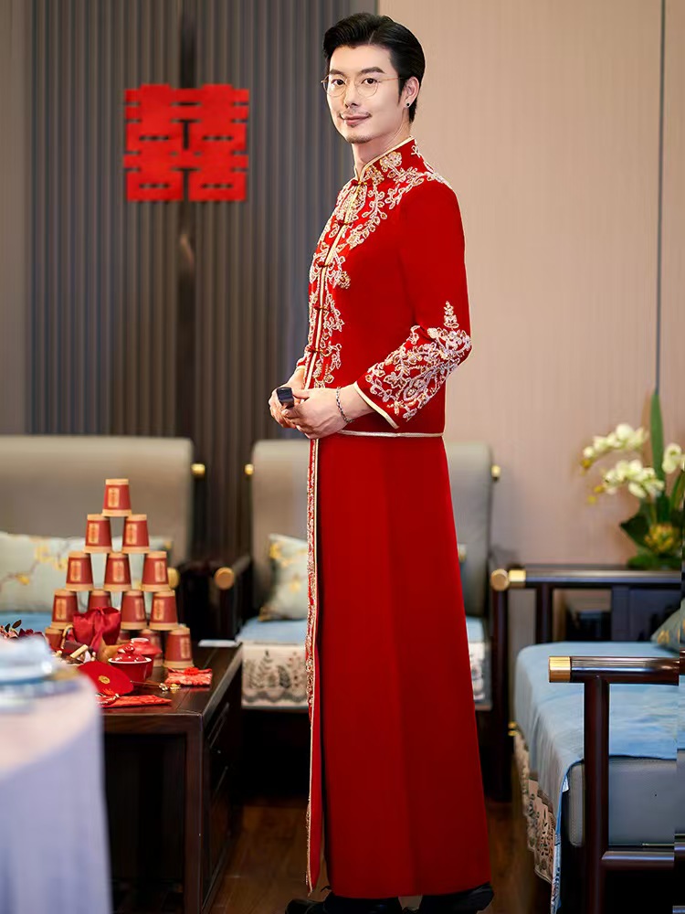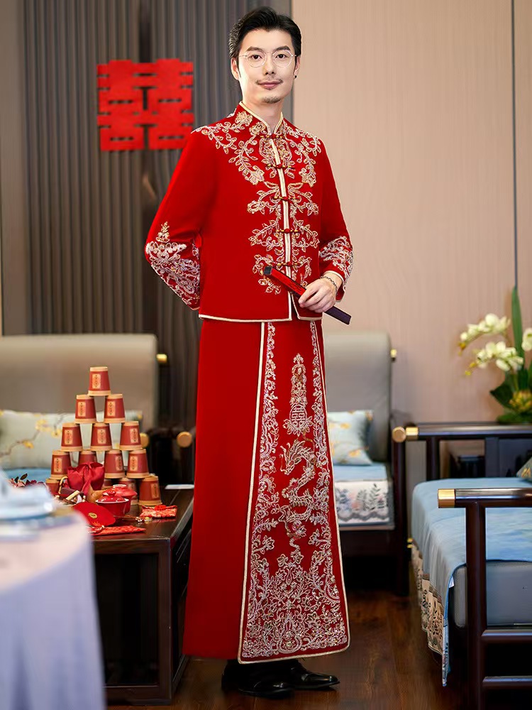 HQ-032 Xiuhe Men's Clothing Groom's Costume Tang Suit