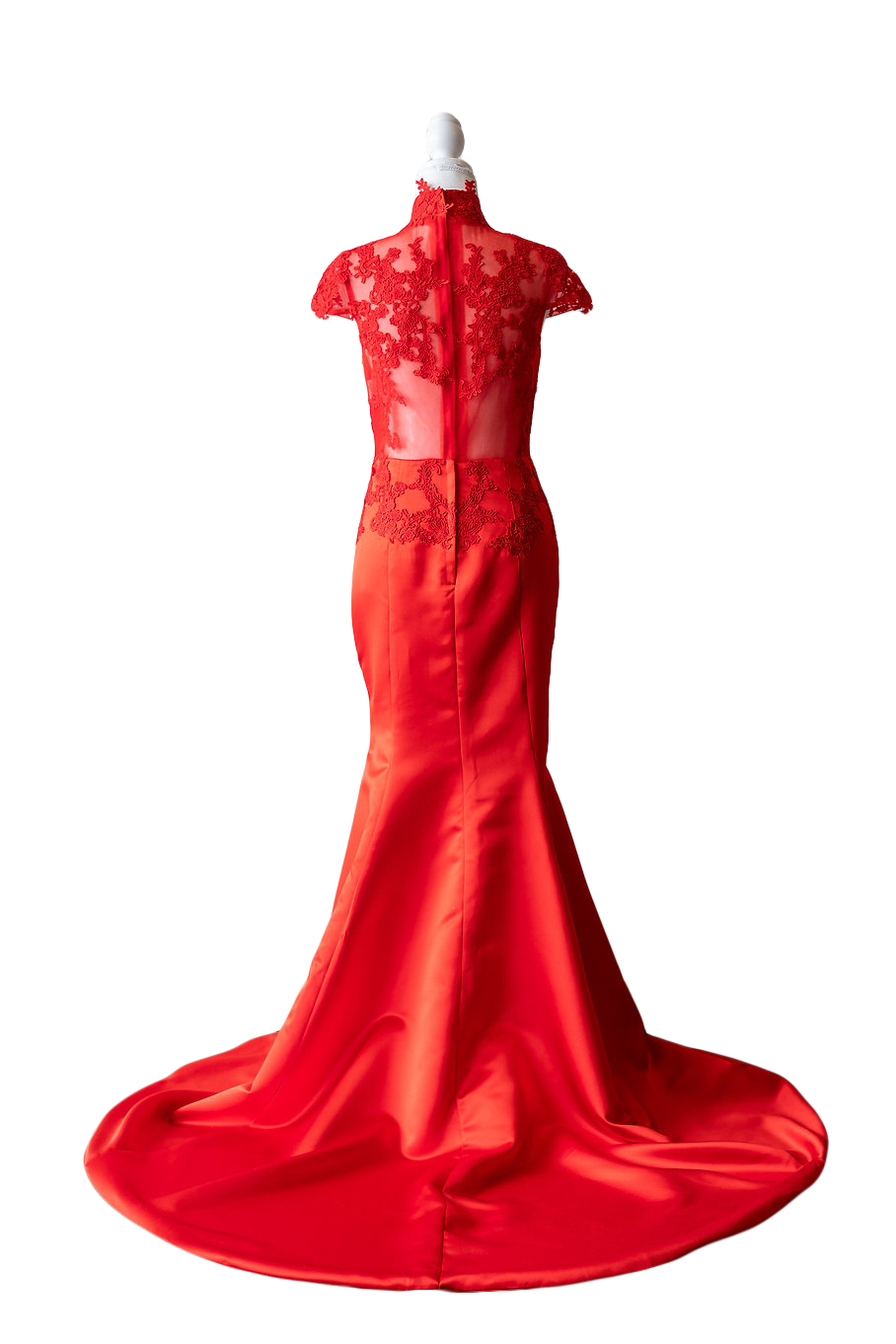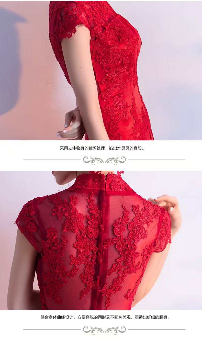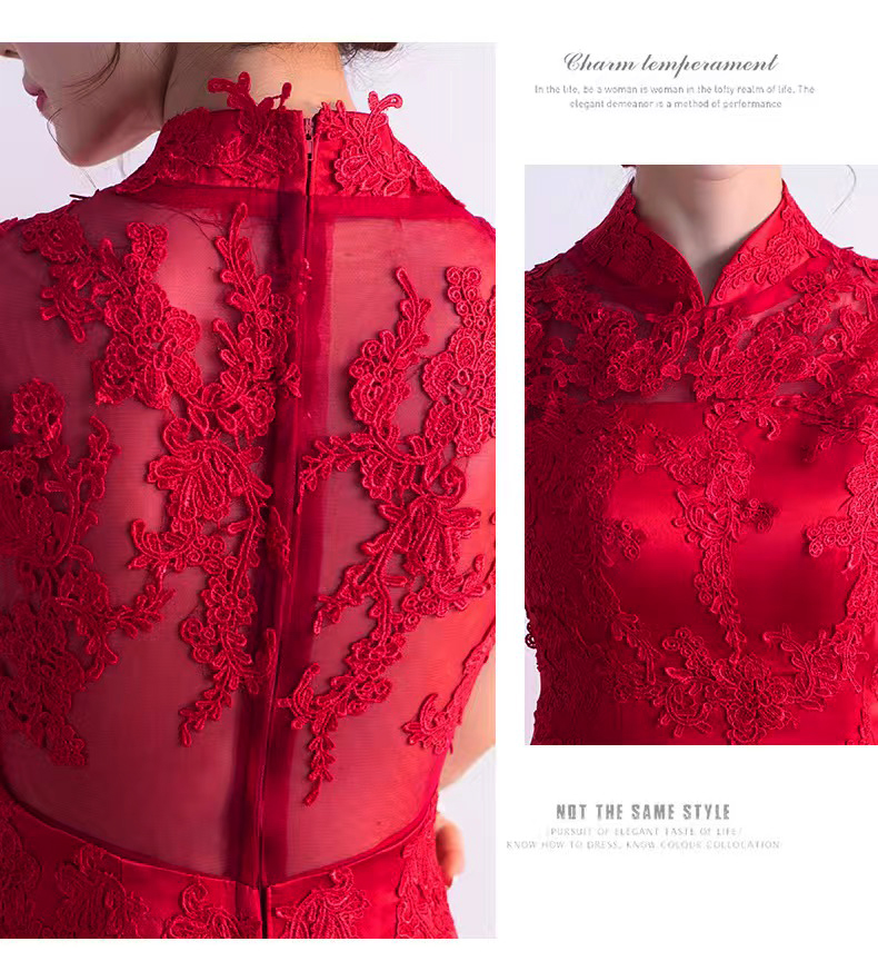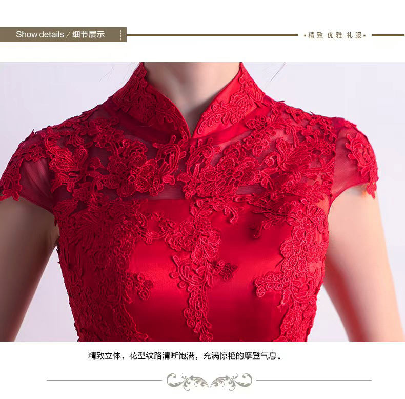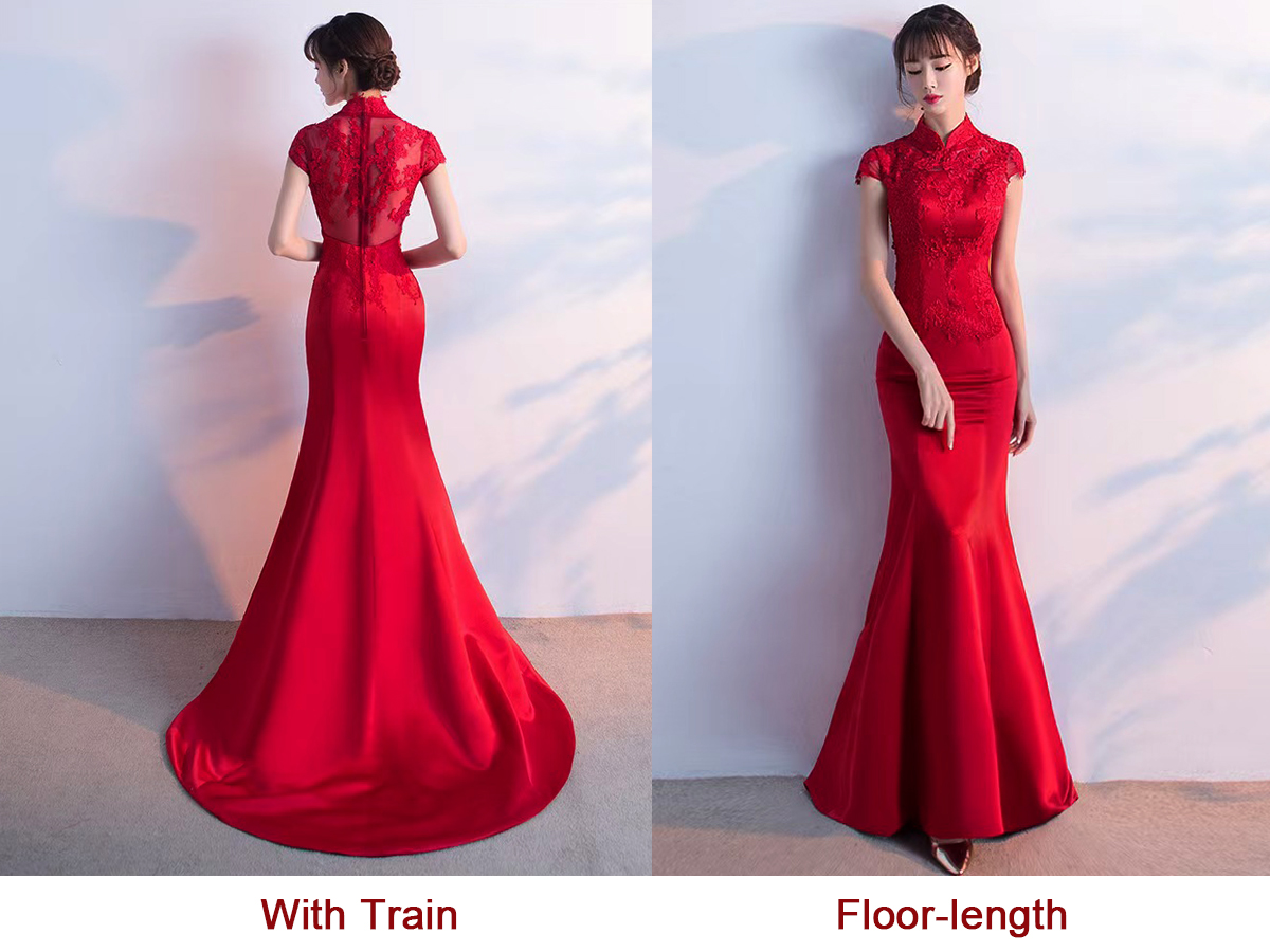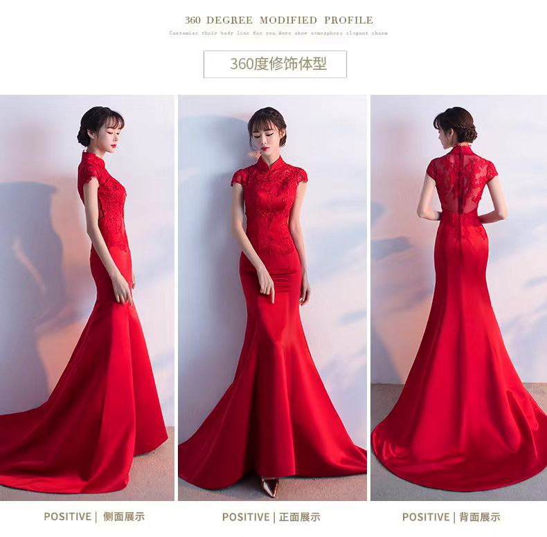 375 red long style wedding dress with train