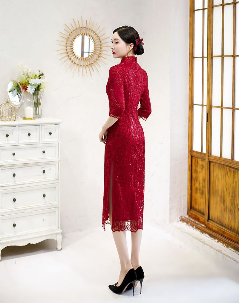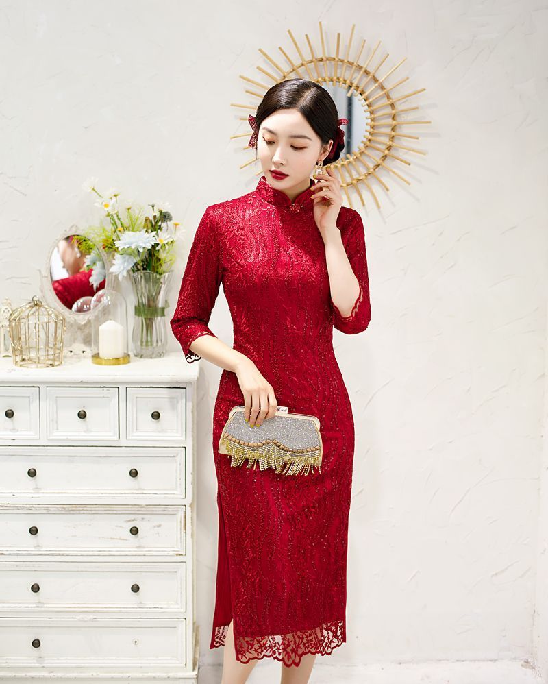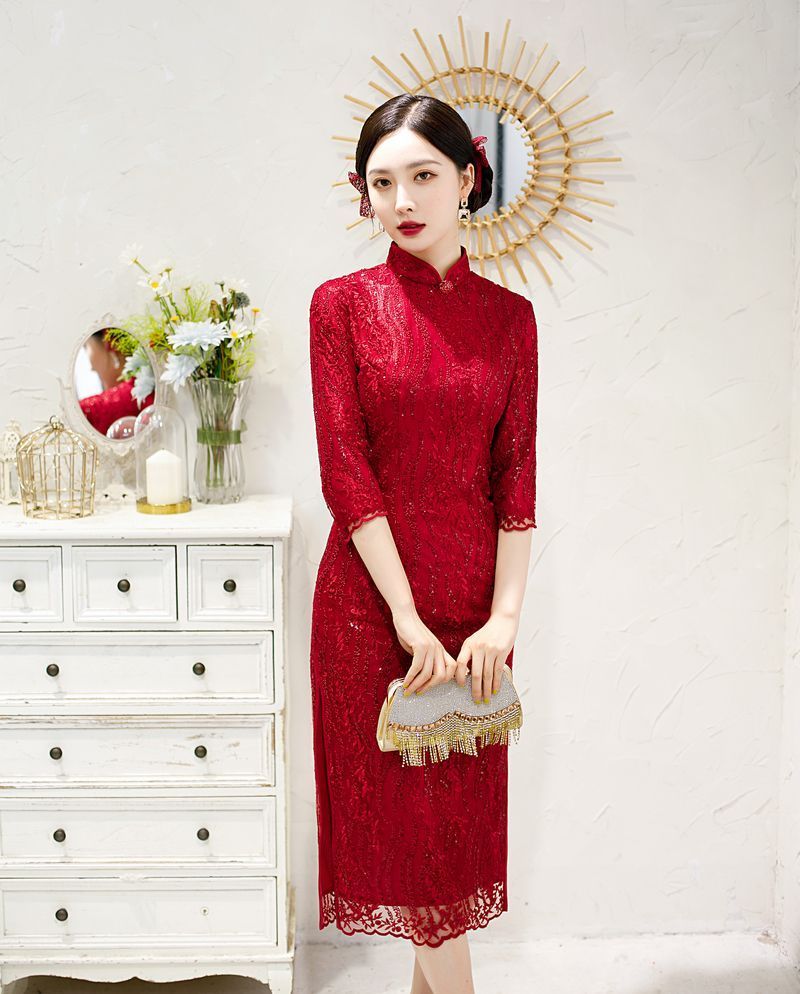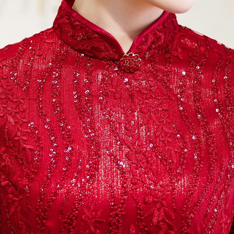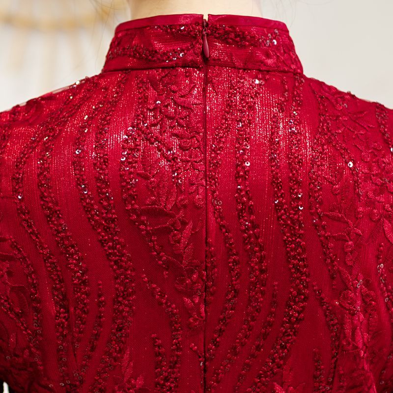 8043 Red Qipao Dress With Sequins