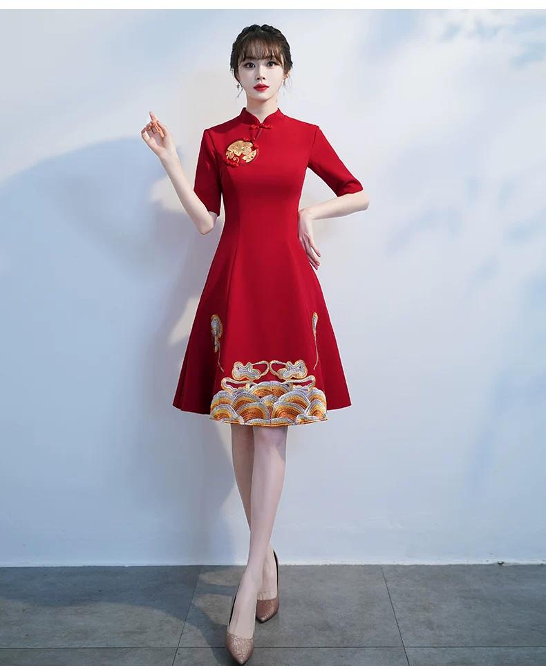 FDG210749 Bridal Dress/Red Cheongsam/Qipao